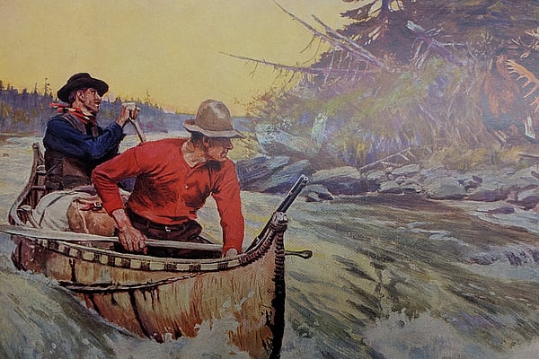 At home in Chicago, German-born painter Carl Conrad Preussl (1894 – 1951) filled canvases with the smoke of factories, the steel gray of train tracks, and upward stretches of window-studded skyscrapers. When he painted Old Faithful in 1929, fourteen years after automobiles were admitted into Yellowstone National Park, perhaps it is not surprising that industry crept in at the corners. Finely rendered White Co. touring cars in sparkling crimson and tangerine, their engines stalled, decorate his landscape at lower right and left. Their occupants—diminutive men and fur-coated women—litter the bottom edge of the painting, dwarfed by that un-stalled natural engine: Old Faithful.
