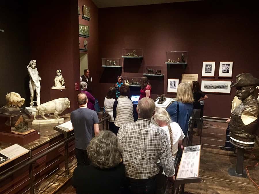 After a morning spent hearing about art of the past and present, symposium attendees got up close and personal with the creative process. Artists Linda Raynolds, Tracy Linder, and Dustin and Vic Payne presented some of their in-progress work, while Caleco Foundry and the Harry Jackson Studio held community open houses. Beverly Perkins, Chief Conservator at the Buffalo Bill Center of the West, along with Alison Rosenthal, Advanced Conservation Research Fellow, demonstrated how X-ray fluorescence can be used to study the material makeup of bronze sculptures. And last, but certainly not least, the Whitney Western Art Museum’s Curatorial Assistant, Nicole Harrison, led outdoor sculpture tours, introducing guests to the museum’s monumental masterworks.