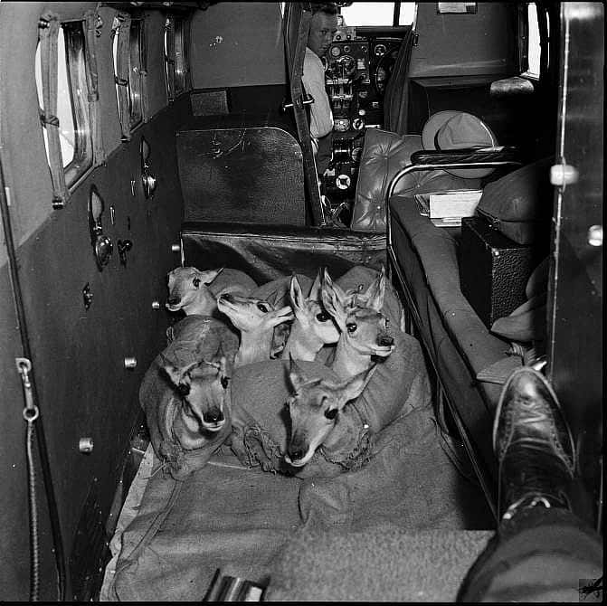 In 1936,The Hanover Zoo in Germany wanted antelope. Thinking a multiple day ship voyage too long, Belden enlisted the help of the Hindenburg, a blimp replete with swastikas on the tail. The Hindenburg landed in New Jersey to pick up her new charges. “None of the fawns was air-sick,” Belden told Time Magazine. “Whenever they seemed to mind the heat, we just flew a few thousand feet higher. The trip was a cinch.”