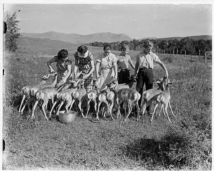 Faced with competition for their grazing cattle, Charles Belden had an idea. “I was trying to raise sheep and cattle, and the antelope were eating all the feed,” he said. “The antelope belong to the state, but I got a permit to catch the fawns and sell them to zoos. The state allows me the money as a compensation for the feed the animals eat on the place. Nobody has any desire to kill the antelope, since this would exterminate them. That’s what happened to the buffalo. But by selling the fawns we can reduce the number.”