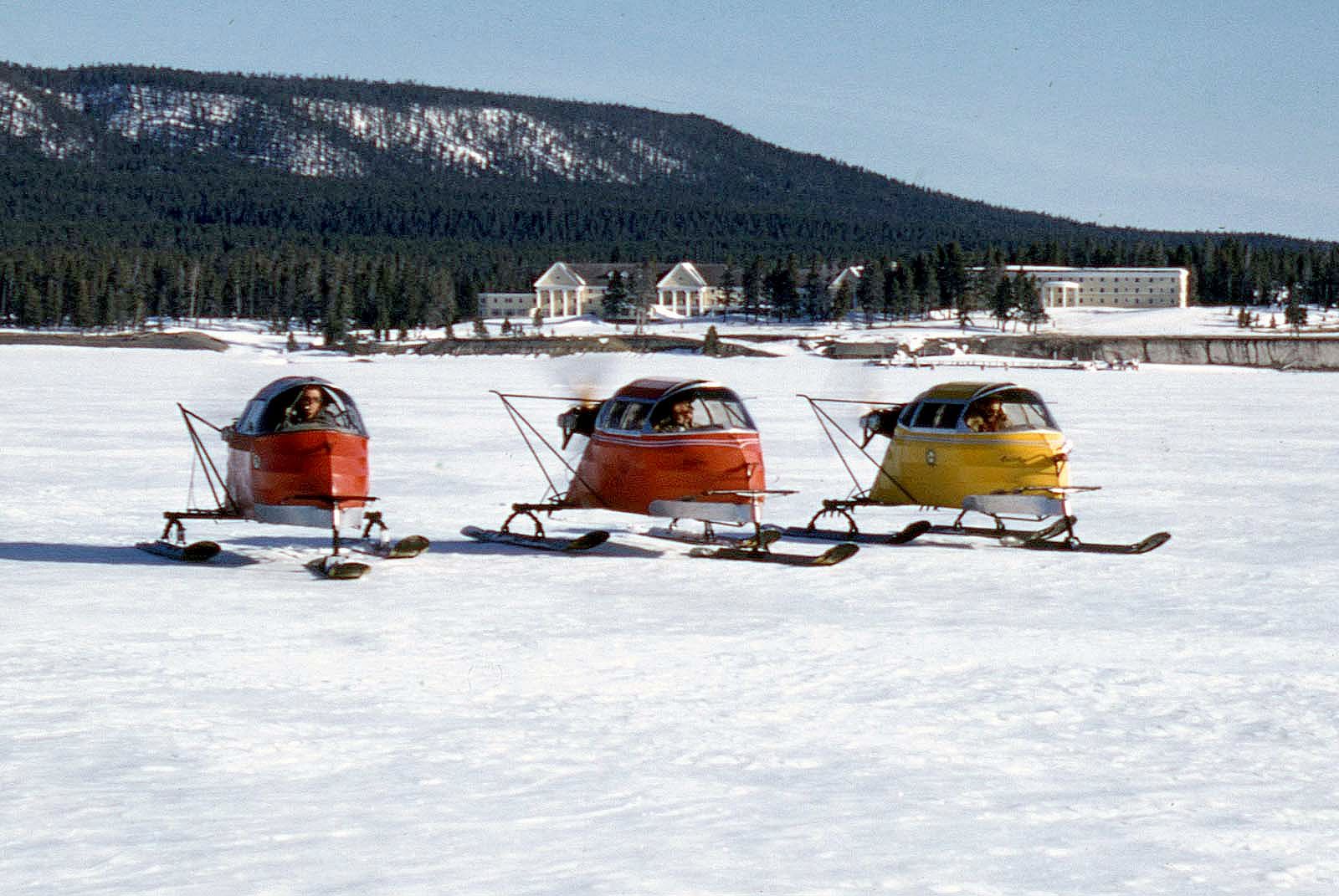 For this illustrated presentation, Bob Richard presents A Winter Expedition through Yellowstone. He recounts the story of and shares photographs from a winter trip in the park in 1955, when Bob was a senior in high school. Organized by Bob’s father, Jack Richard, the weeklong excursion—undertaken with aircraft-on-skis called snowplanes—also included the editor of the Cody Enterprise, Larry Morrison, and three Wyoming Game & Fish Department wardens (James White of Jackson, Dale West of Moran, and “Red” Wilkerson of Big Piney). Starting from Jackson, the group toured Yellowstone’s south loop photographing the scenery and animals in the Park. The trip took them from the south entrance to Old Faithful (where they met District Ranger Bob Murphy), on to Madison Junction, Norris, and then over to the Canyon and Lake areas, and then back out the south entrance.