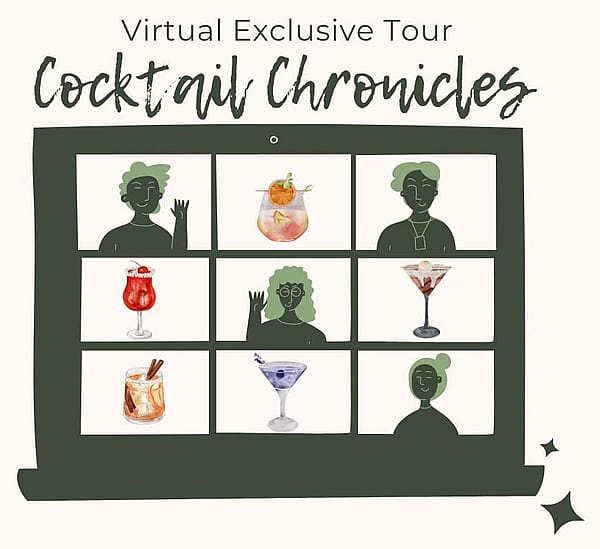After registering, participants will receive a list of drinks to be featured in this “Cocktail Chronicles” along with a list of required supplies to purchase if you’d like to follow along in the cocktails’ creation. Participants should plan to join through a provided Zoom link, and Exclusive Tours staff will happily work with you over the phone to help troubleshoot connection concerns before the event. All you need is a cellphone, tablet, or computer with a camera that can participate in video chats.